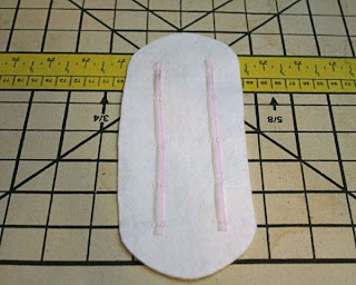 On the nonwired side, sew two strips of ribbon along the top and bottom of your felt piece, sewing down at 1-inch intervals forming loops for bobby pins.